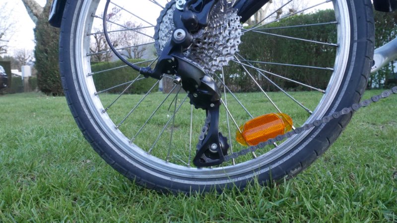 Voici une photo d'un dérailleur chape courte et une cassette 11-32.