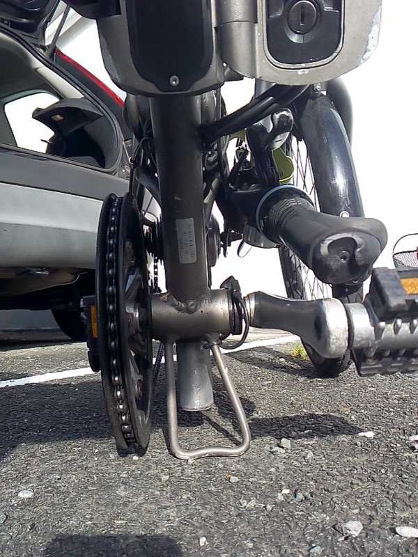 Espace (dans le sens du vélo) entre le pied metallique et le pied articulé: env. 10 cm