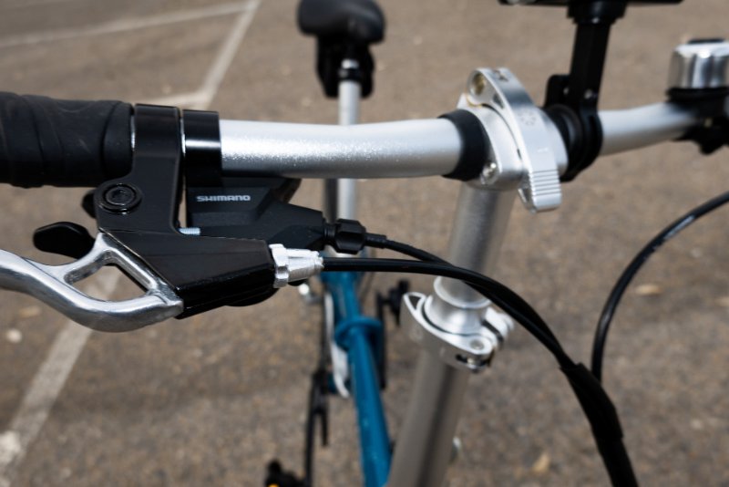 Il est équipé du support avant de sacoches Brompton.